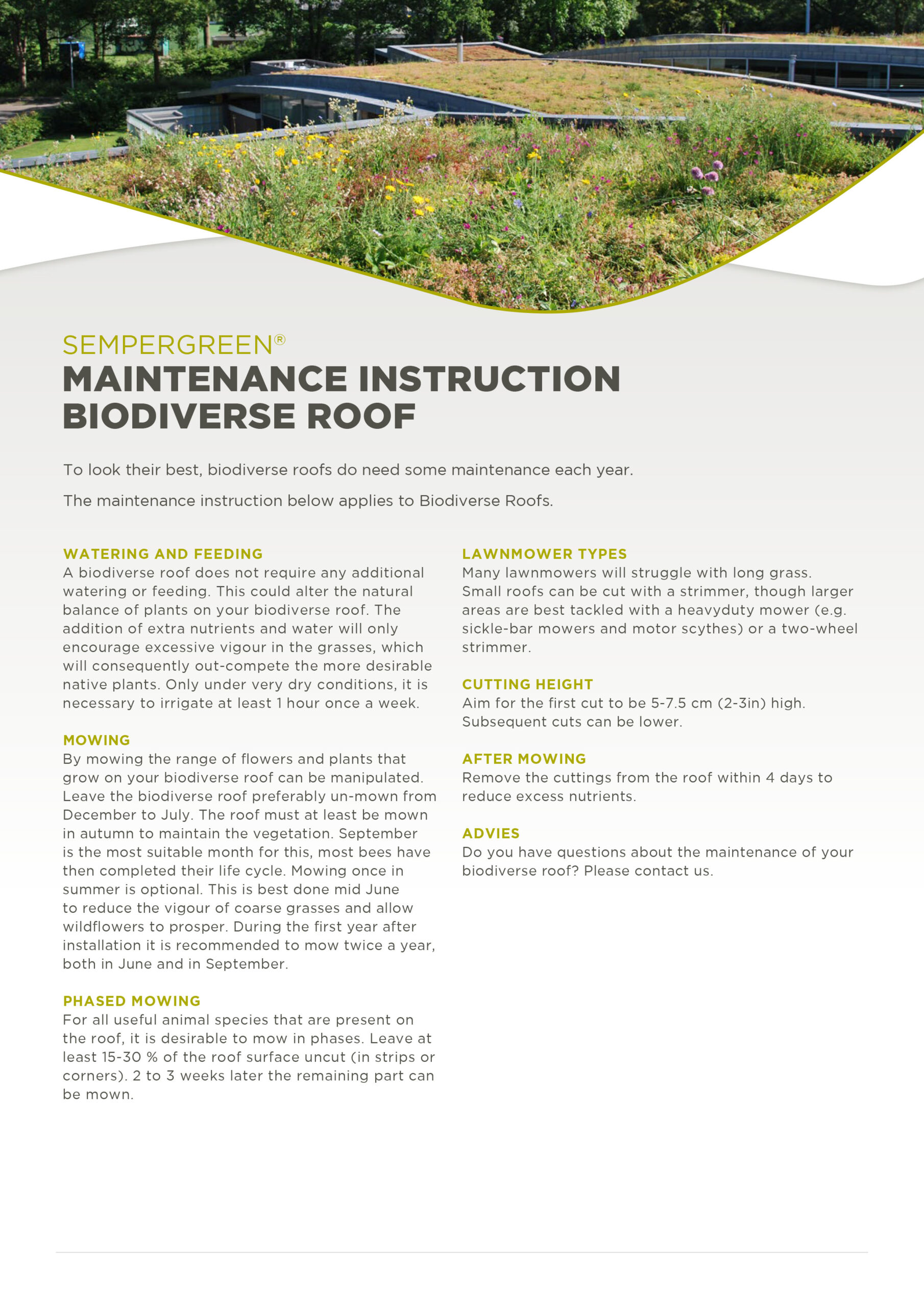 3 layers to install, Drainage layer, Roof Garden Substrate, Sedum vegetation blanket. For extra protection, our Protective Layer and Root Barrier foil can be purchased as additional products. |