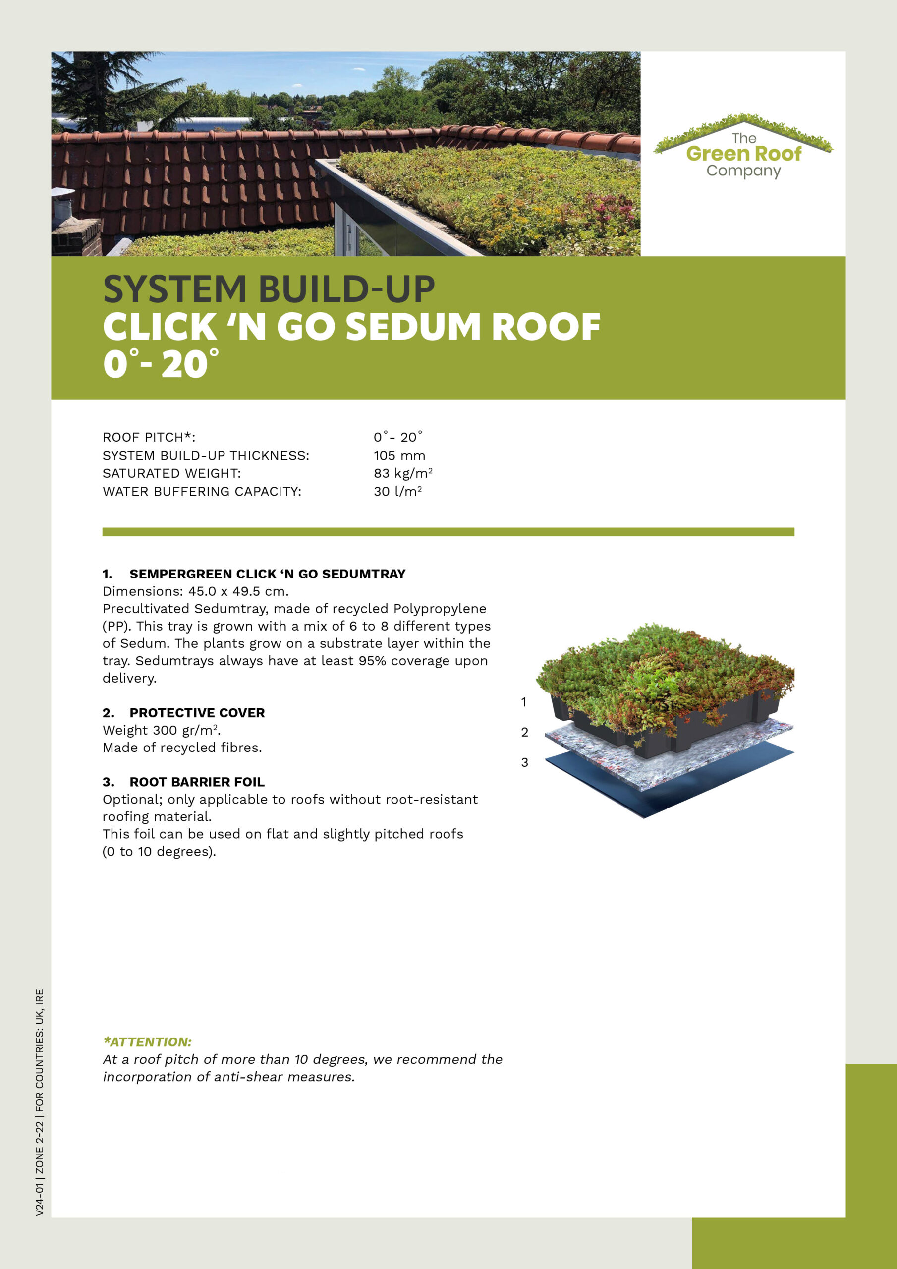 This system includes 3 layers: Drainage, Substrate and Sedum vegetation |